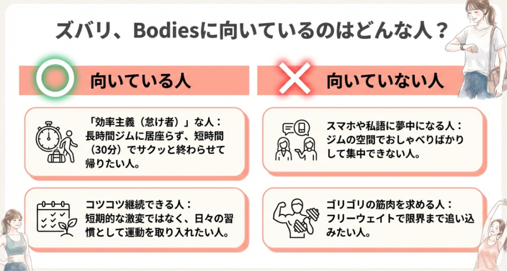 | 向いていないタイプ | ボディーズの特徴・理由 | 代替の提案 |