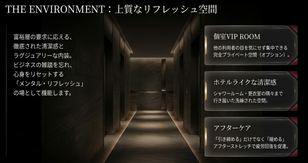 - ガチのボディビルダーや安さ重視の人にはミスマッチだが、忙しいビジネスマンには最適な環境