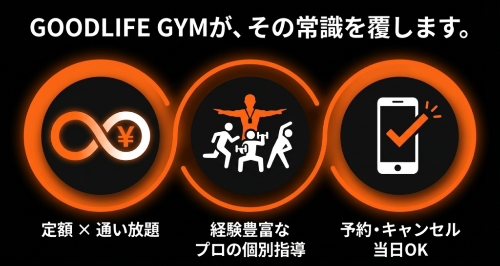 グッドライフジムは、コスパ良くプロのトレーナーの指導を受けながら、無理なく運動習慣を身につけたい方に最適なセミパーソナルジムです。
